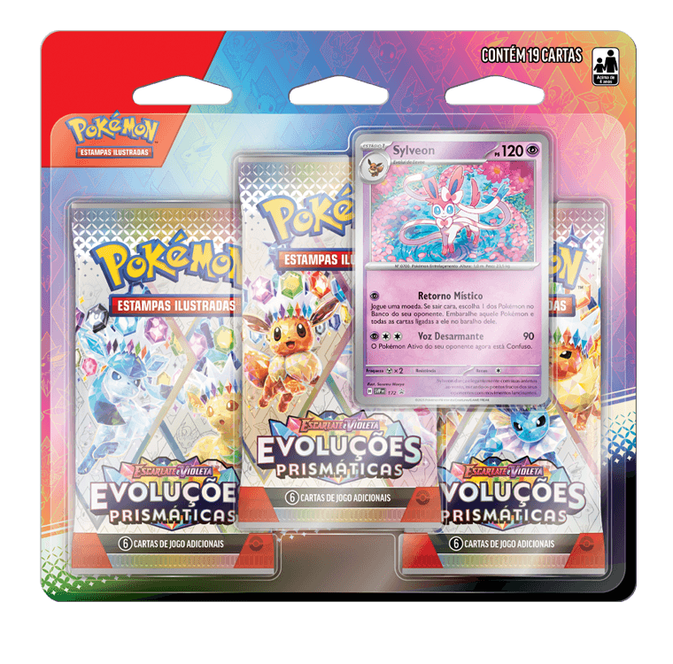 O Blister Triplo Pokémon Evoluções Prismáticas é a opção perfeita para quem quer abrir boosters da coleção e ainda garantir uma carta especial para a coleção.